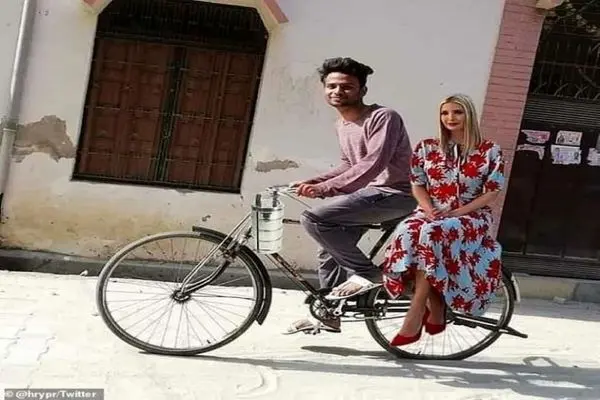 در یکی از این تصاویر، ایوانکا را به صورت نشسته بر روی یک نیمکت سنگی نشان می دهد که فردی هندی در کنار او نشسته و پایش را بر روی ایوانکا انداخته است. عکس دیگر ایوانکا را نشان می دهد که در جلوی تاج محل ایستاده و فردی هندی دست او را گرفته است. یک هندی دیگر نیز جایگزین جارد کوشنرف در عکس مشترک این دو شده است. اما یکی از جالب ترین این تصاویر، ایوانکا را در حالی نشان می دهد که در پشت دوچرخه یک مرد هندی نشسته است.