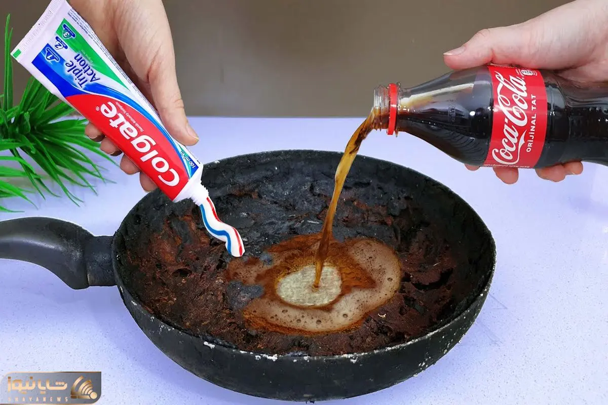 ترفندهای خانه داری؛ با نوشابه و خمیردندون تابه جزغاله شده رو تمیز کن