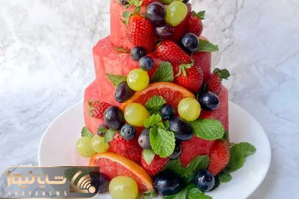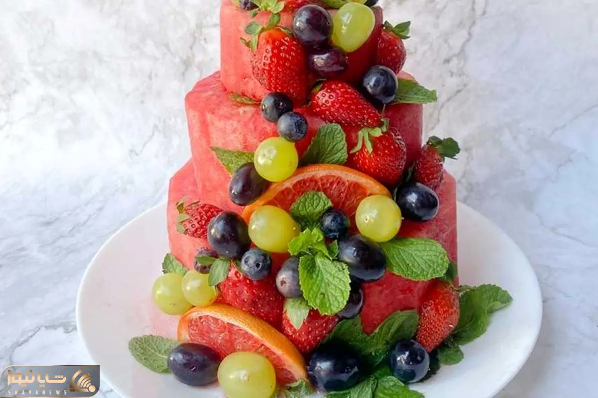 ایده های خلاقانه؛ تزیین میوه به شکل کیک برای شب یلدا