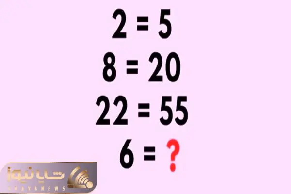 اگر ۲ = ۵ و ۸ = ۲۰ و ۲۲ = ۵۵ باشد؛ جواب تساوی ۶ =؟ چیست؟