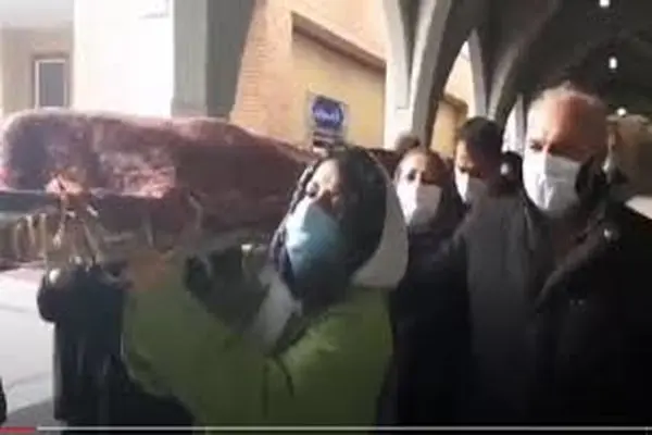 حضور نرگس محمدی فعالی حقوق بشر و زندانی سیاسی در مراسم تشییع محمد ملکی اولین رئیس دانشگاه تهران که پنجشنبه 13 آذر 99 دار فانی را وداع گفت