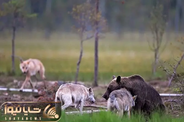از جذابیت های حیات وحش؛ نبرد خرس گریزلی تنها با گله گرگ ها بر سر غذا با پایانی باز