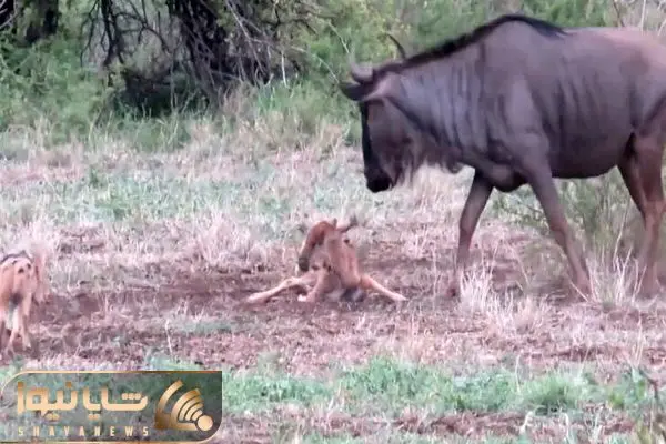 از جذابیت های حیات وحش؛ دفاع تمام قد گوزن یالدار از بچه اش در برابر شغال های گرسنه