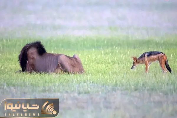 از جذابیت های حیات وحش؛ شغال نترسی که واسه دزدیدن لاشه بدجووور رفت رو مخ شیر بی اعصاب