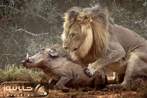 از جذابیت های حیات وحش؛ شیر واسه ناهارش با جون کندن زیاد گراز رو از زیر زمین کشید بیرون