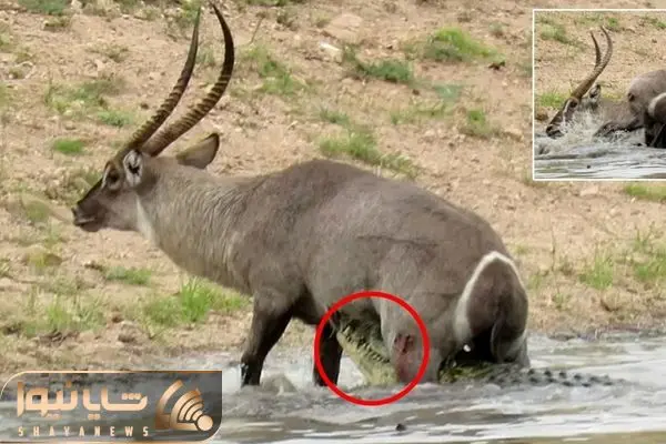 از جذابیت های حیات وحش؛ کَلِ آب‌دوست به شکل معجزه آسایی از چنگ تمساح سمج گریخت
