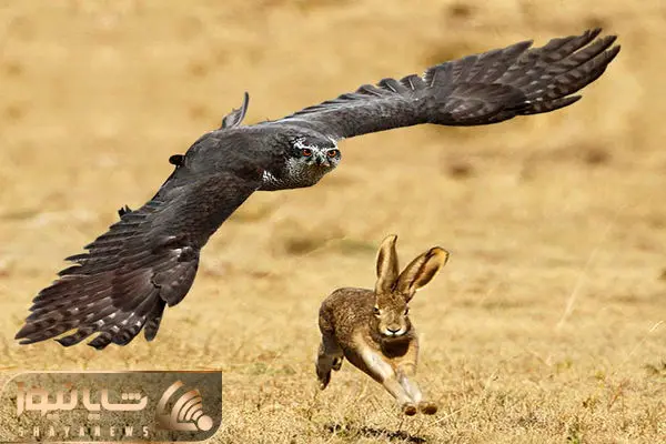 از جذابیت های حیات وحش؛ عقاب تیزبالی که در تعقیب و گریزی نفس گیر خرگوش رو لقمه پیچ کرد