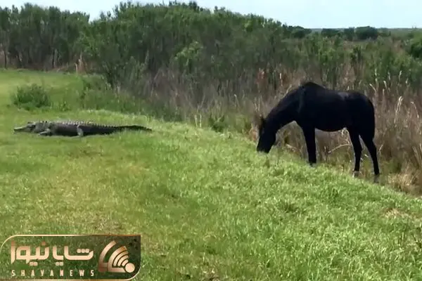 از جذابیت های حیات وحش؛ اسب وحشی یهووو رَم کرد و یه بارانداز به تمساح شوربخت زد