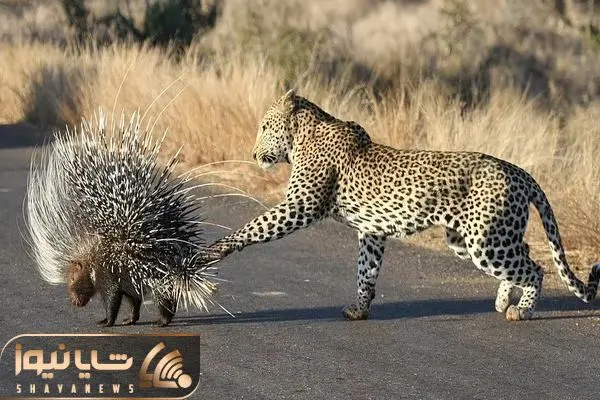 از جذابیت های حیات وحش؛ پلنگی که میخواست جوجه تیغی رو شکار کنه خودشو خونین و مالین کرد