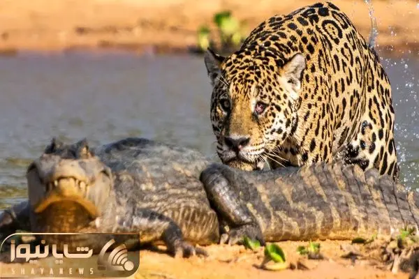 از جذابیت های حیات وحش؛ جگواری که عین فیلم ترسناک از لای درختا اووومد و دخل تمساح آورد