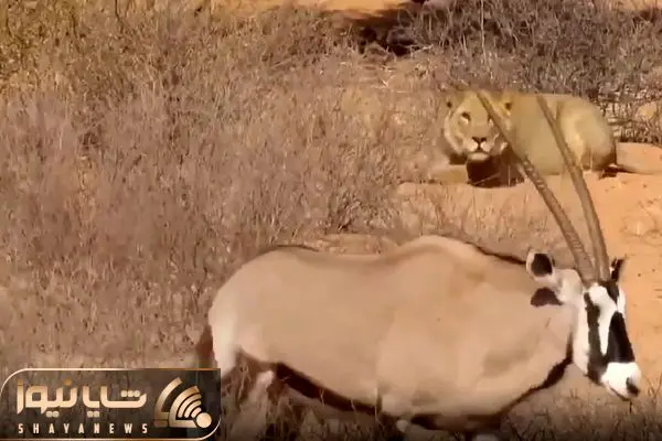 از جذابیت های حیات وحش؛ عاقبت به خیری گوزن تیز شاخی که جلو ماده شیر عرض اندامی می کرد!