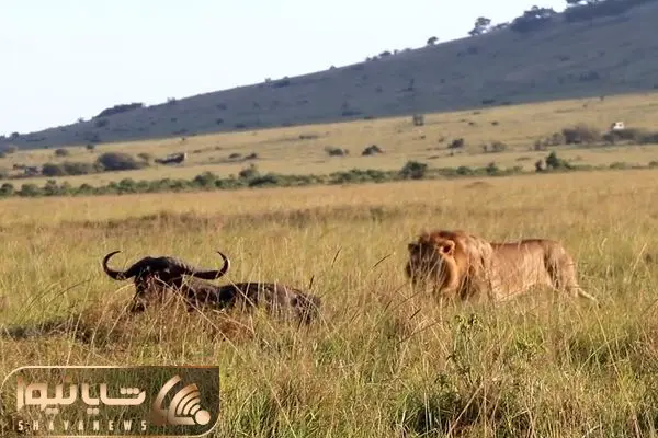 یک بوفالوی جدا شده از گله در ماسایی مارا در حال استراحت بود که شیرها به یک قدمی اش رسیدند اما بوفالوی حواس پرت متوجه حضورشان نشد و در یک چشم به هم زدن شکار شد. بوفالو پستانداری از نژاد گاوها با شاخ هایی هلالی شکل است که جثه ای بزرگ دارد. بوفالو نژادهای مختلفی دارد که معروف ترین آن ها، بوفالوی آمریکایی و بوفالوی آفریقایی می باشند.