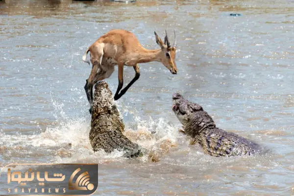 از جذابیت های حیات وحش؛ تمساح و اسب آبی با سرعت بنز افتادن دنبال ایمپالا و دخلشو آوردن