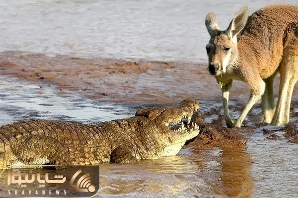 از جذابیت های حیات وحش؛ ورود به قلمروی تمساح قُلچماق به قیمت جان کانگوروی بیچاره تمام شد
