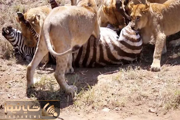 از جذابیت های حیات وحش؛ گورخر داشت رد میشد که شیر ها غافلگیرش کردن و زنده زنده خوردنش