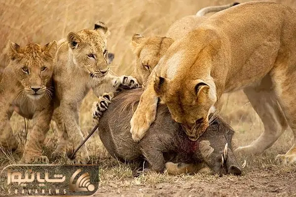 از جذابیت های حیات وحش؛ شیر ها ریختن سر گراز بی نوا و زجرکشش کردن حتی استخوناشم خوردن