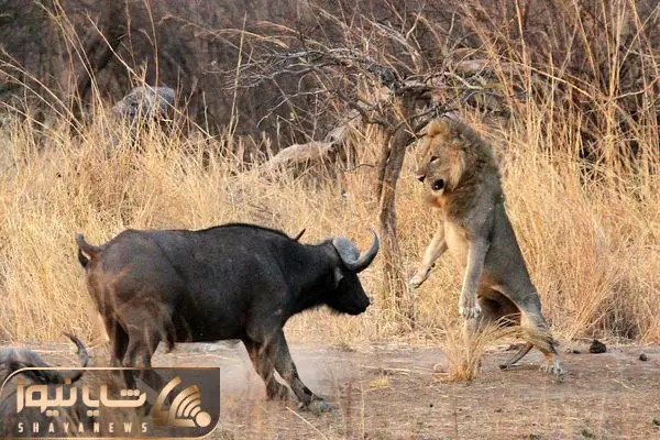 از جذابیت های حیات وحش؛ بوفالو هایی که واسه شیر ها شاخ شدن و شیر هایی که حسابی ترسیدن