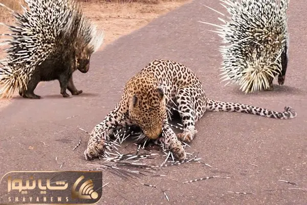 از جذابیت های حیات وحش؛ رویارویی پلنگ و جوجه تیغی و پلنگی که به زور تیغارو از تنش میکشه