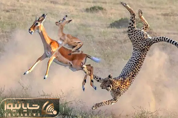 از جذابیت های حیات وحش؛ پرش حیرت انگیز پلنگ واسه شکار ایمپالا همه از شدت ترس پریدن هوا