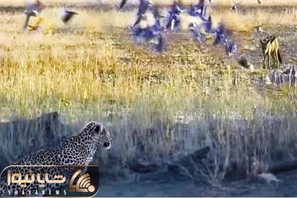 شایانیوز- در این لحظه غیرمنتظره یک پلنگ یک شغال را که مشغول شکار گله کبوتر است شکار می‌کند. این منظره باورنکردنی در پارک فرا مرزی کاگالاگادی آفریقای جنوبی مشاهده شد.