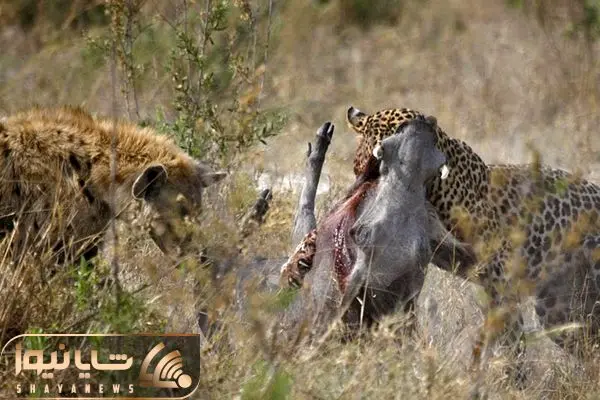از جذابیت های حیات وحش؛ پلنگ داشت گراز رو لقمه پیچ میکرد که کفتار رسید و گرازِ دررفت