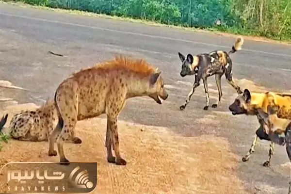 وقتی سگهای وحشی شروع به آزار و اذیت کفتار مادر با تولهاش کردند، هم کفتارها و هم سگهای وحشی ایستادگی کردند