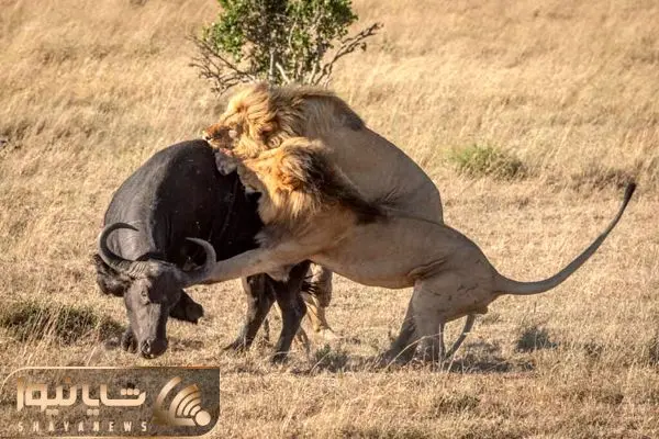 از جذابیت های حیات وحش؛ 3 تا شیر که آویزووون بوفالو شدن و همه بدنشو وحشیانه گاز گرفتن