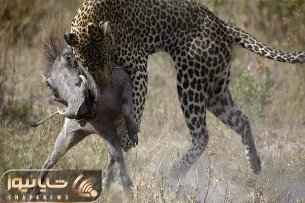 از جذابیت های حیات وحش؛ گراز بیچاره که افتاد زیر دست و پای پلنگ وحشی و سخت جووون داد