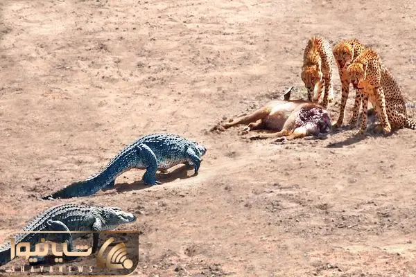 یوزپلنگ ها تا چشمشون به تمساح افتاد گرخیدن و شکارشون تقدیمش کردن؛ چه با حسرت نگاه میکنن