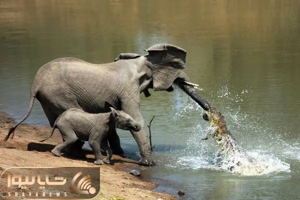 تمساح قُلچماق چه بی رحمانه خرطوم فیل بیچاره رو میکشه؛ بچه فیل بدبختو چرا تیکه تیکه کرد؟