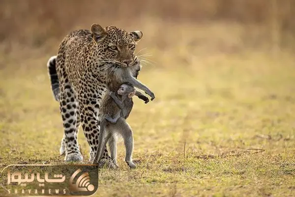 در این ویدئو پلنگ یک بابون را شکار کرده و به دندان گرفته نکته خاص این ویدئو بچه بابونی است که همچنان به پیکر مرده مادرش چسبیده.