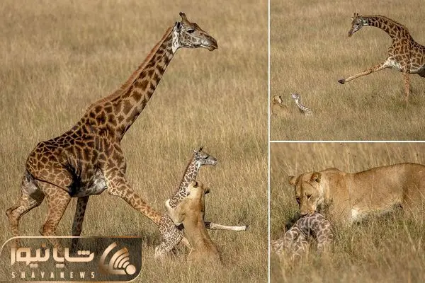 شیر های گشنه ای که جلوی چشمای بهت زده زرافه مادر بچشو خوردن؛ بعدَم دخل خودشو آوردن