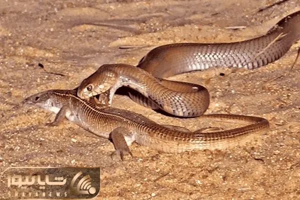 مار کبری تو چشم بهم زدن مارمولک رو قورت داد؛ مارمولکِ اولش چه شاخ بازی ای در می آورد!