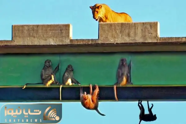 شیر هایی که رفتن روی پل و میمون هایی که واسه فرار از دستشون از پل آویزونن؛ چه ترسیدن