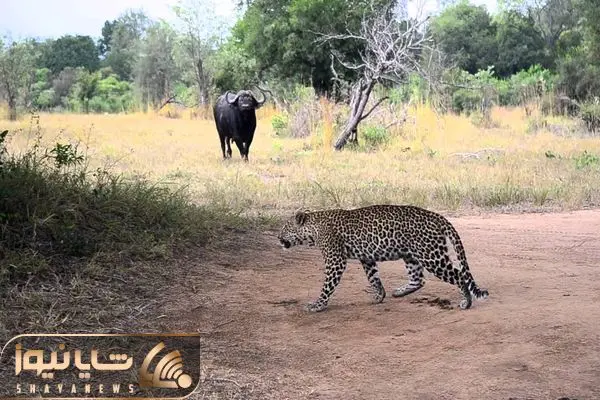 حمله ناغافل پلنگ گشنه به بوفالو و بچش؛ ببین بوفالوی مادر چطور تولَشو نجات داد