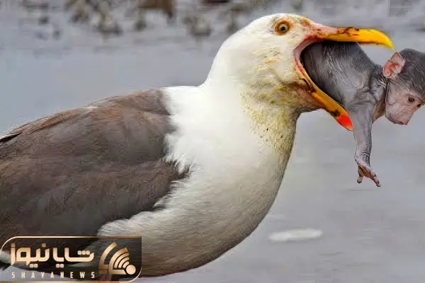 مرغ دریایی که هر چی دم دستش هست رو درسته قورت میده؛ بعد خوردن بچه میمون گَلوش قلنبه شد