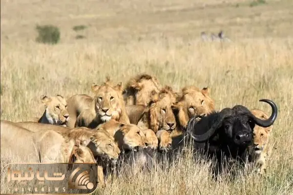 حمله ناگهانی بوفالوی عصبانی به شیر هایی که دارن رفیقشو زنده زنده میخورن؛ چه ناراحته