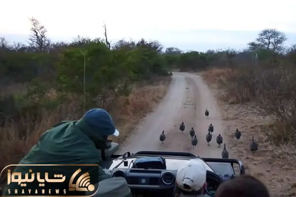 گردشگرا که با ماشین افتاده بودن دنبال پرنده ها ناغافل پلنگ رو جلوشون دیدن؛ چه جیغی زدن