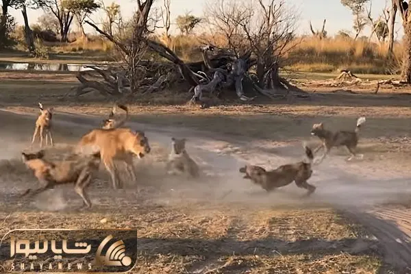 شگفتی های حیات وحش؛ شیر قوی هیکل یه تنه مقابل سگ های وحشی آفریقایی مبارزه کرد اوووف!