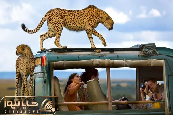 ماشین آقاهه و رفیقش توسط 5 تا یوزپلنگ محاصره شده؛ آقایون داداشام یکم بترسید