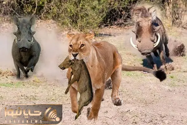 شیر که خیلی ریز و سوسکی رفت سر وقت گراز و بچه هاش و دخلشونو آورد؛ عجب گرد و خاکی شد