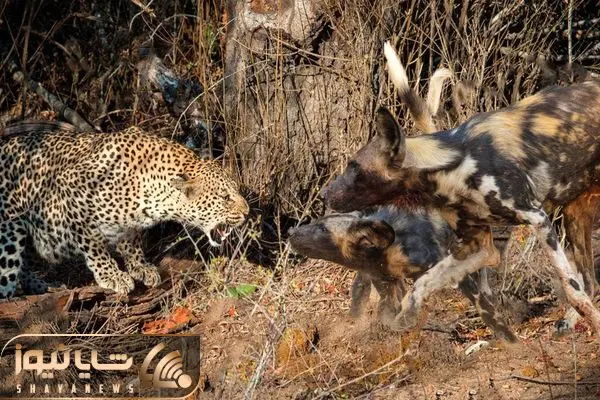 پلنگی که از پشت فَنس میخواد به سگ های وحشی حمله کنه ولی نمیتونه؛ سگ ها چه شاخ شدن
