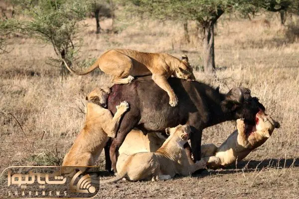 حمله دلخراش شیر ها به بوفالوی بیچاره که دیدنش دل شیر میخواد؛ زخمش چه ناجورِ