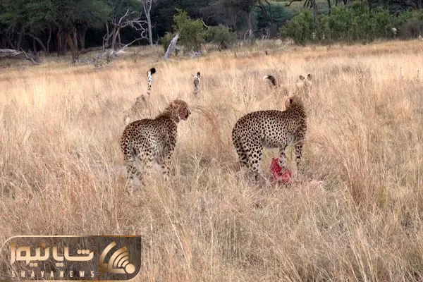 در این ویدئو سگ های وحشی ای را خواهید دید که با شلوغ کاری و سر و صدا می خواهند غذای یوزپلنگ ها رو بدزدند.