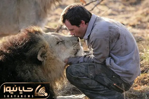 رابطه صمیمانه آقای مربی با سلطان جنگل / شیر سرشو گذاشته رو پای مربی و ازش بوس میگیره