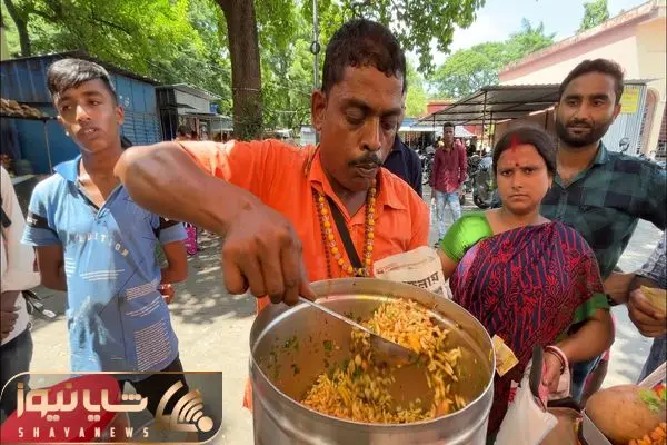 این غذای خیابانی که انگار توی هند خیلی طرفدار داره آش شله قلمکاریه واسه خودش چرا که همه چی توش داره.