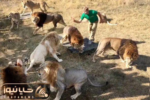 آقای مربی رفته بین شیر ها و بهشون غذا میده / چرا گوشتاشون کوچیکه اینا شیرَنا نه گربه