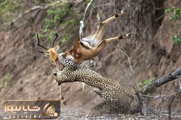 پلنگ در چشم به هم زدن ایمپالا رو رو هوا زد / طفلی انقدر هول شد خودش اومد بغلش