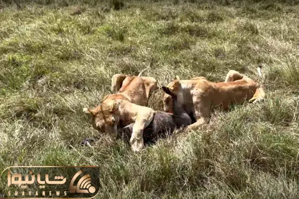 شیر انقدر بد گردن گراز رو فشار داد تا جون داد؛ اون یکی شیر رو زنده زنده داره میخورتش