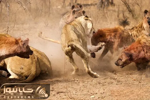 از جذابیت های حیات وحش؛ دعوای شیر ها و کفتار ها سر غذا داشت یکی از کفتارا رو سقط میکرد